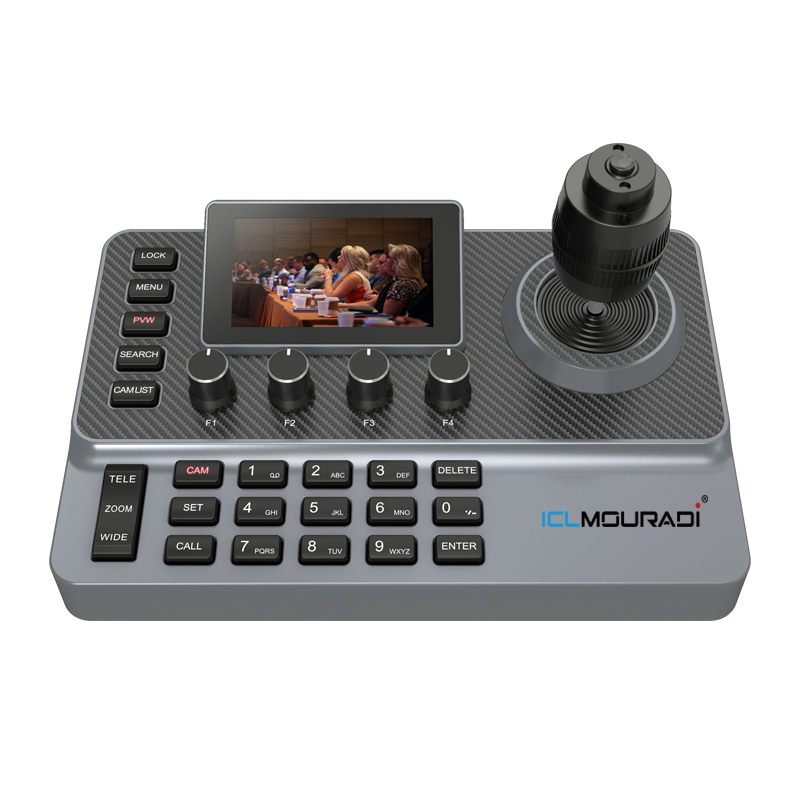 The MPC10 Series PTZ Camera Controller is small size with amazing design. It has 4D joystick and 3-inch LCD Screen, support Real-Time Preview. With Customized Knob, the Keyboard controller can control over 1000pcs cameras easier. Perfect for broadcast, live streaming, video conferencing, church, and education video production.