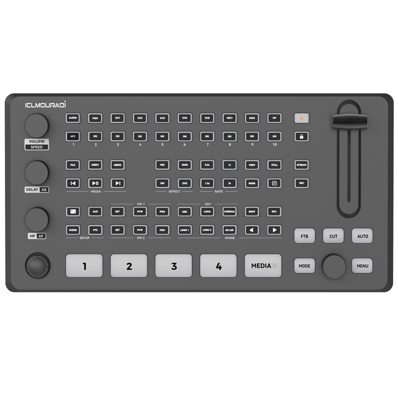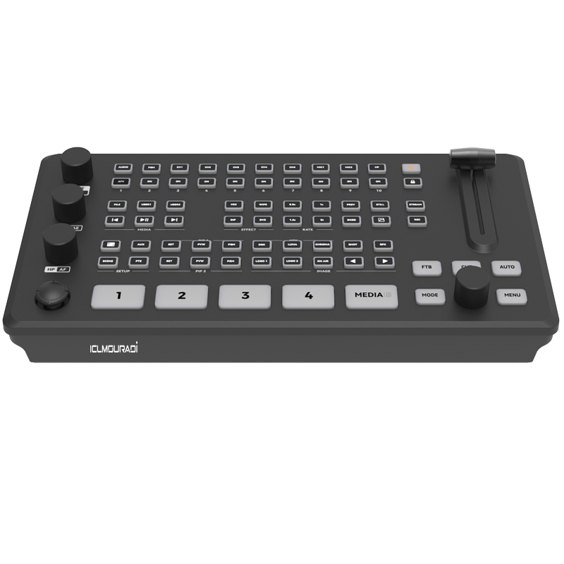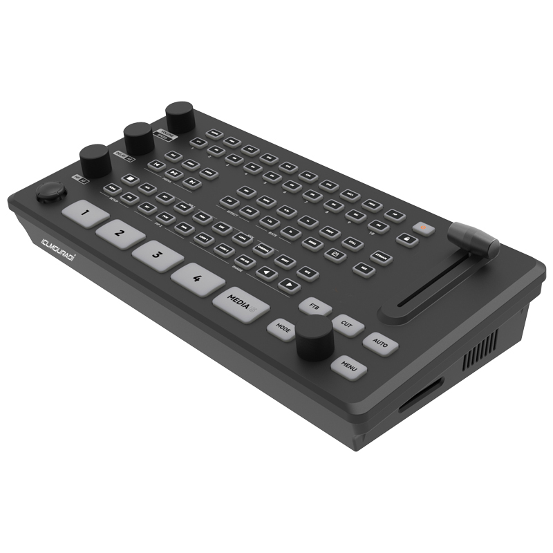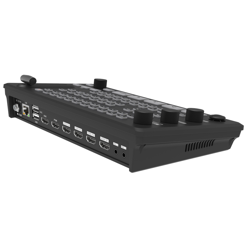 The AK80 Video Switcher is designed for professional multi-camera production and live streaming. With 2 x SDI and 2 x HDMI 4K resolution input channel, it supports preview, Dynamic Lower Third Overlay, Flexible Screen Switching, In-House Recording and Built-In Streaming Engine, suitable for video production, broadcast media, proav events, google meeting and elearning industry.